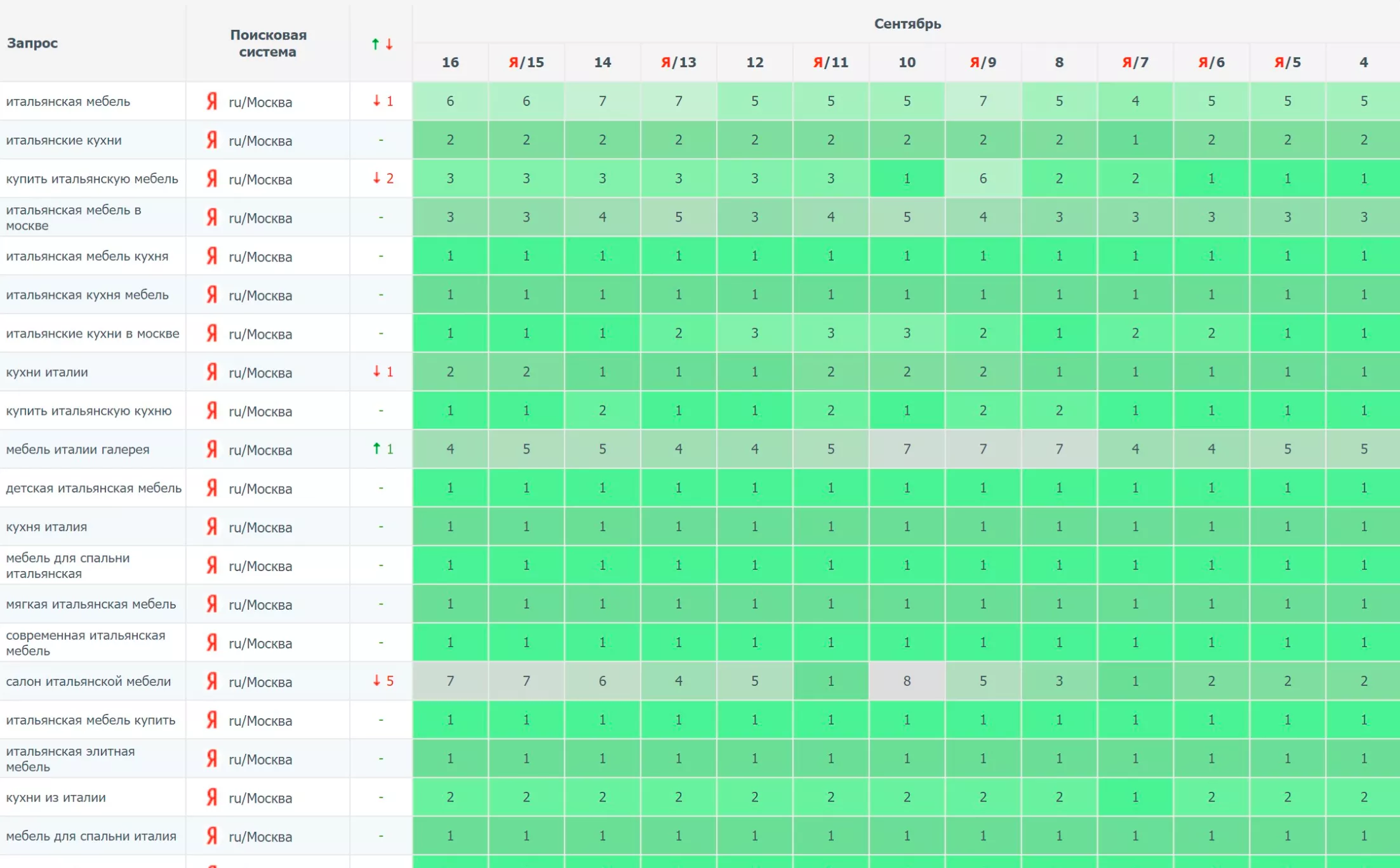 В случае продвижения по позициям, специалист собирает и согласовывает с заказчиком семантическое ядро, которое обычно состоит из 100-500 высокочастотных запросов, и постепенно выводит их в ТОП поисковой выдачи.