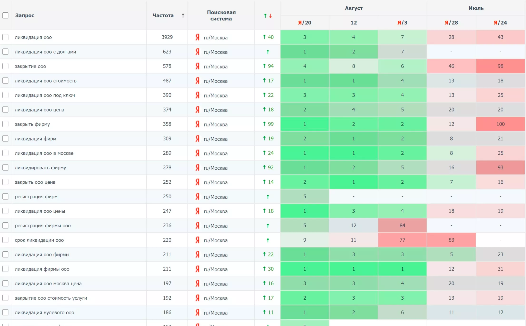 Проверить эффективность такой раскрутки достаточно просто, так как заказчику достаточно лишь выяснить на каких местах находится проект по нужным ключевым фразам. Чтобы не заниматься этим вручную, можно воспользоваться онлайн-сервисами, которые группируют статистику по всем продвигаемым запросам в одном окне и предоставляют удобный отчёт о видимости ресурса в поисковых системах.